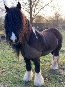 De eigenaren van Biteback Products hebben een paar jaar geleden een kleine ‘gypsy cob’ aan hun kudde toegevoegd. Deze knappe pony heeft weelderige manen en dito sokken.